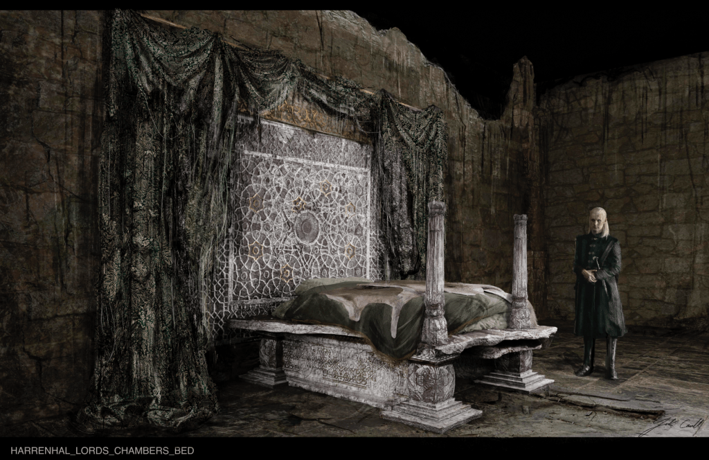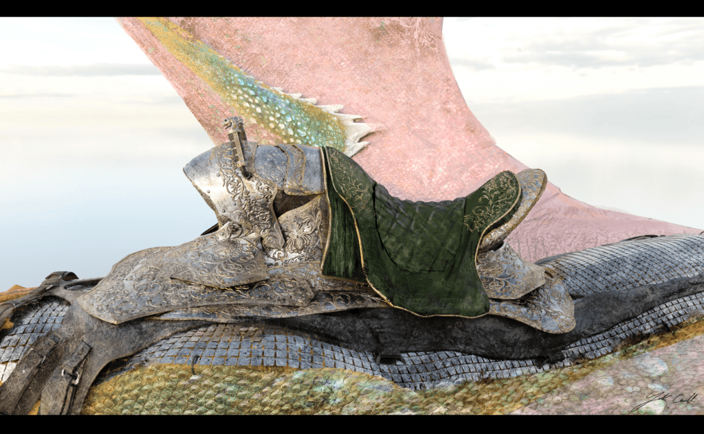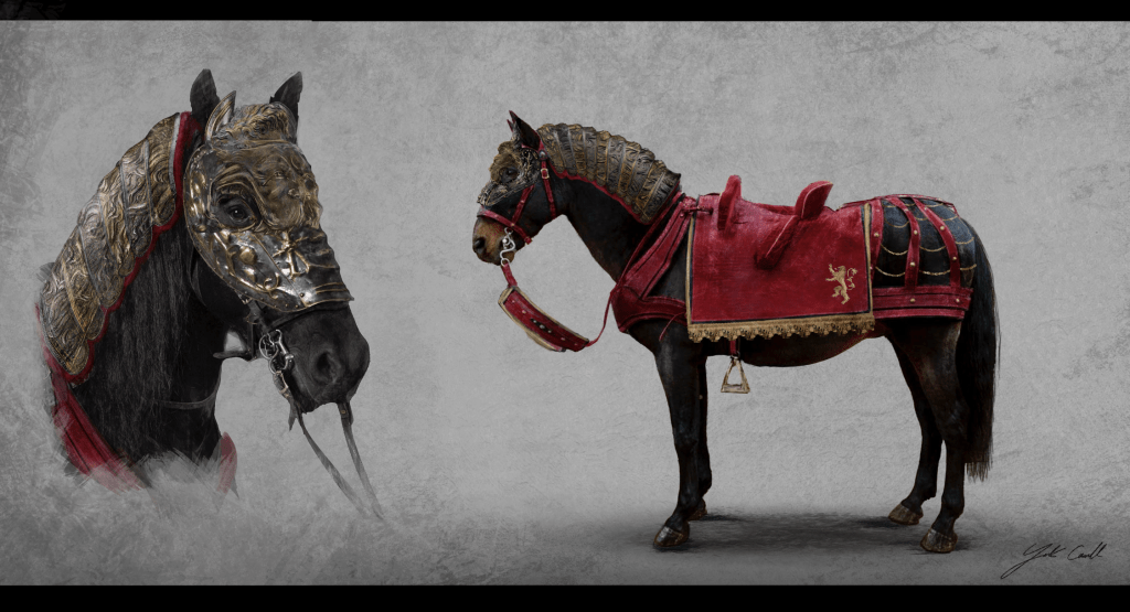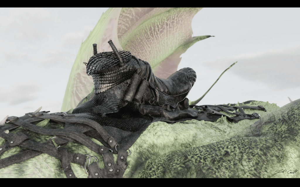 On House of the Dragon season 2, the directors and show runners wanted to develop a new shaped buck for the dragon saddle, slightly higher in profile; we used this new buck to build 3 new saddles : Moondancer, Silverwing and Sunfyre. bellow are concepts of Moondancer’s and Sunfyre’s saddles with stills from the show.