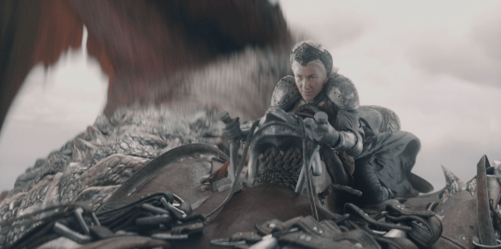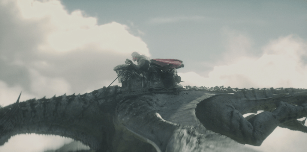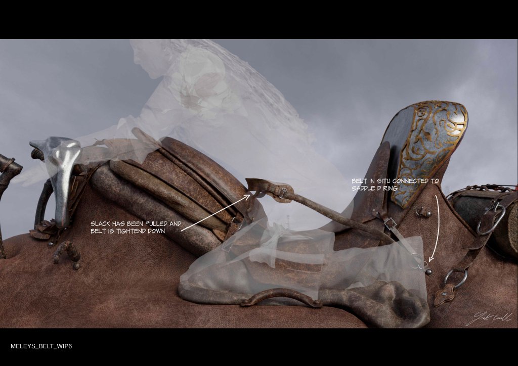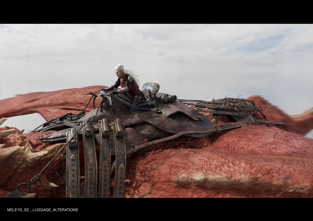 Season 2 also saw us make new adjustments to Meley’s Saddle, for the battle between Vhagar and Meleys, Meleys was to loose all luggage in her webbing. I worked closely with Alan Taylor to develop a specific belt attachment for Rhaenys as she straps in for her final under belly attack on Vhagar, the action was seen in detail and so needed to be extremely functional.